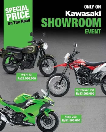 Daftar harga ini adalah harga terbaru dan update yang berlaku di showroom resmi kawasaki di jatiasih pondok gede Bekasi Jakarta Bogor Tangerang Depok. Untuk segmen paling low Kawasaki.